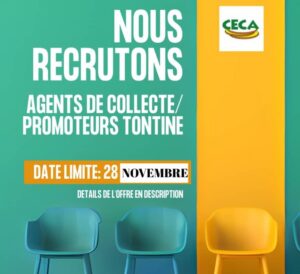 Dans le cadre de l’extension de ses activités, la Coopérative d’Epargne et de Crédit des Artisans (CECA) recrute pour son guichet à Korbonguou, des Agents de collecte promoteurs tontine répondant au profil suivant : Avoir au moins le BEPC Avoir une capacité suffisante de communication, une bonne moralité et un relationnel aisé Avoir une expérience dans le domaine commercial Résider à Korbonguou et environs DOSSIER A FOURNIR Une lettre de motivation adressée au Directeur Général de la CECA Un curriculum vitae actualisé Une copie du diplôme NB. : Les dossiers…